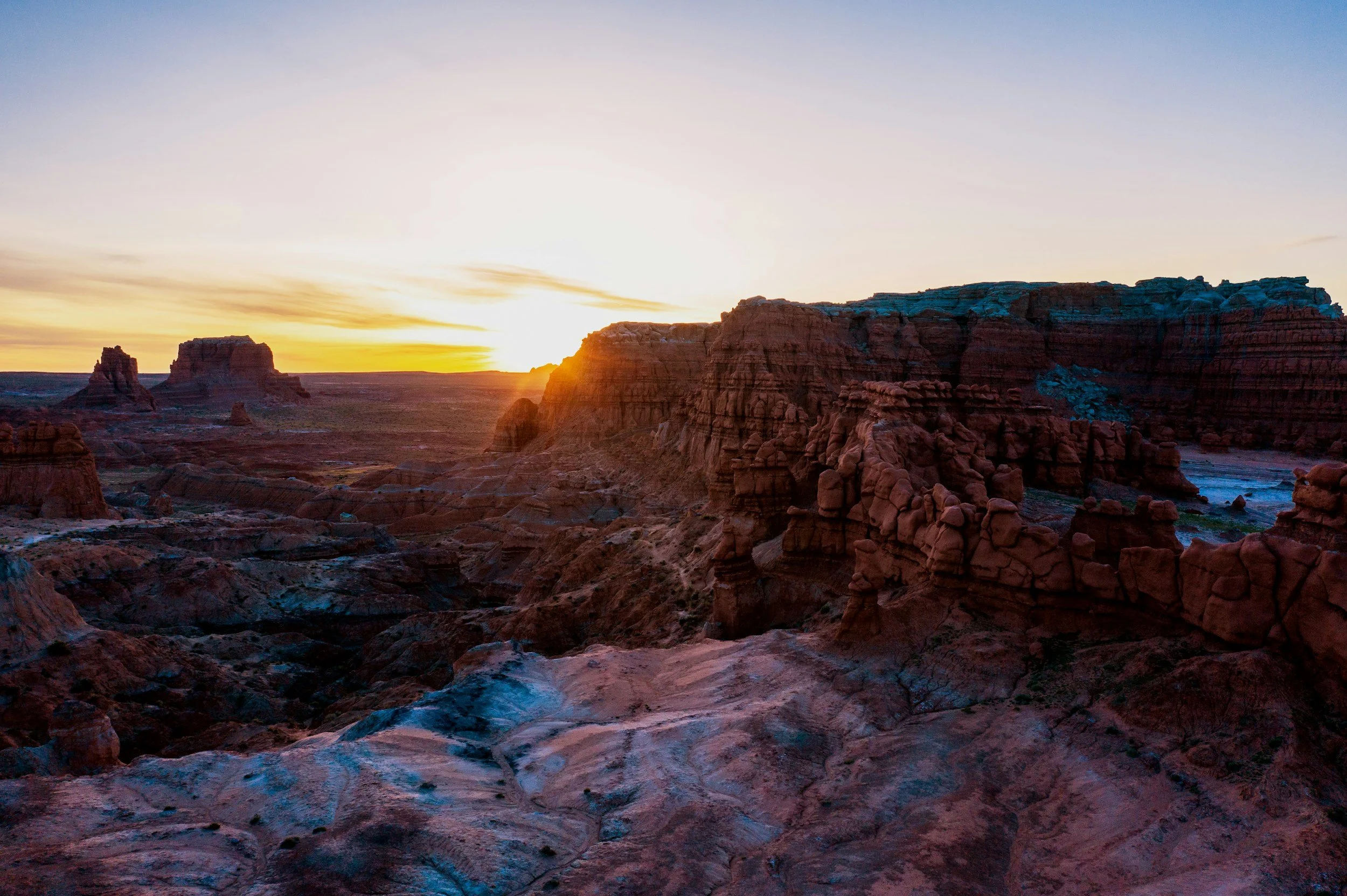 You sit down outside next to a new friend, both of you pausing to take in the sunset as it settles over the red cliffs of Southern Utah. The sky stretches wide above you—painted in gold, rose, and deepening blue.