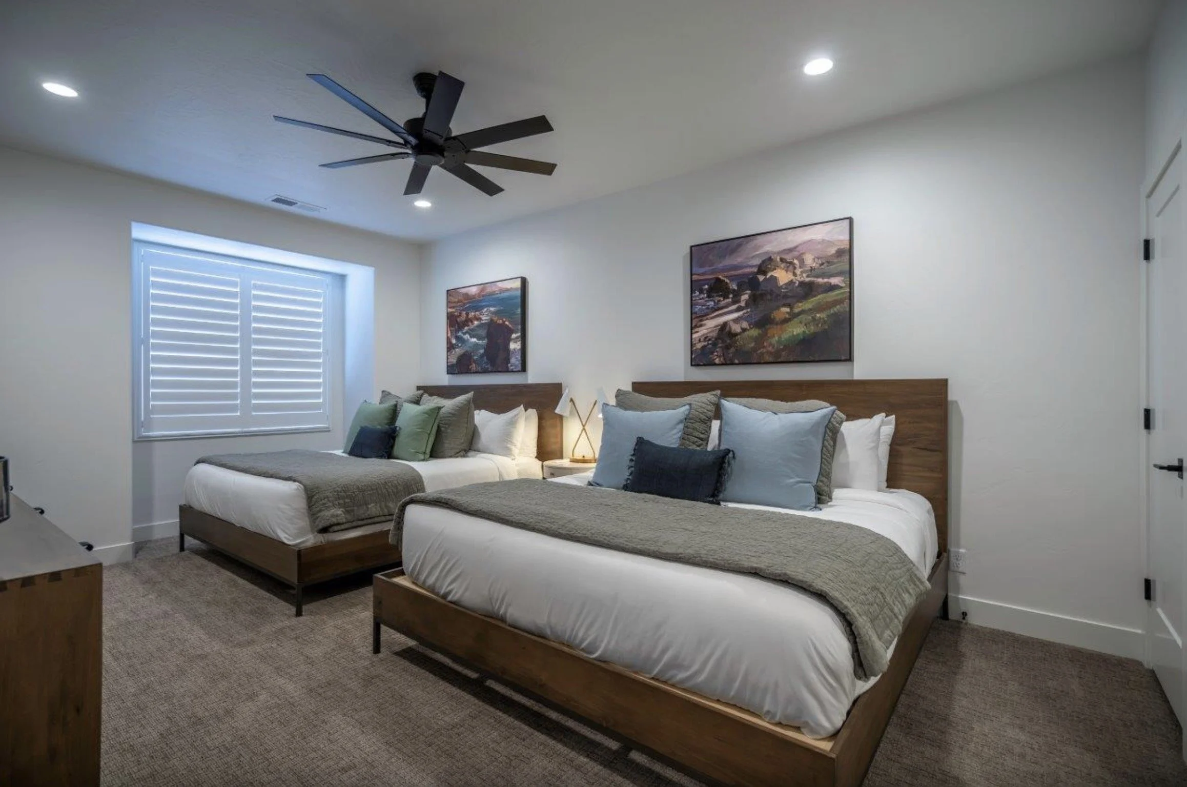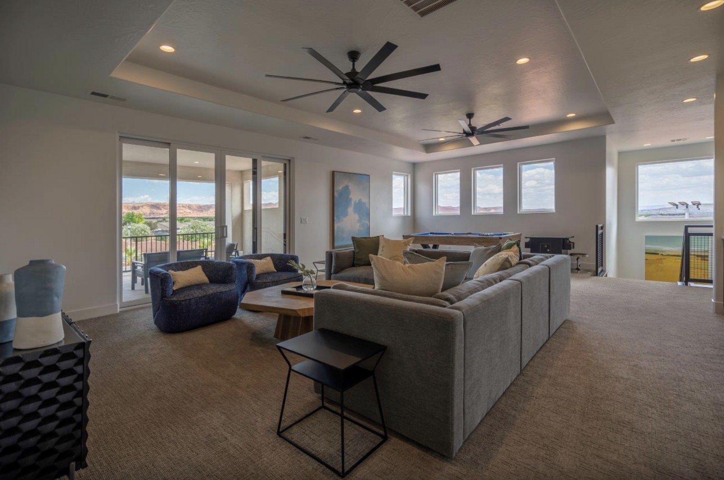 Our shared townhome blends seamlessly with the red rock landscape, featuring open-air living spaces and large windows that bring the desert light, air, and sweeping canyon views inside.